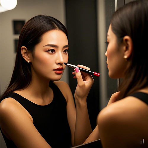 6、遮法令紋,選擇比膚色亮一號(hào)的遮瑕膏。如果嘴突,則選擇跟膚色相近的色號(hào)。