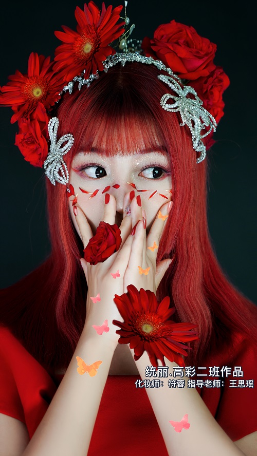 夢幻妝:是人體美術的展示,藝術的構思,可改變模特自身的原樣,以怪異夸張的手法突出的藝術妝面。