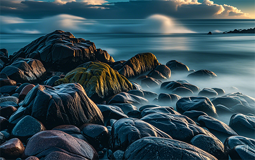 濕潤的巖石能顯示出色彩、質(zhì)感和紋理,而干燥的石頭大多是呈現(xiàn)暗黃色或焦黃色,不僅色彩單一,而且沒有質(zhì)感。這也是沈陽攝影培訓(xùn)學(xué)校老師常提示大家要注意的地方