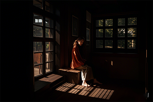 此時只需要記住一個原則將模特安排在明暗交界處,類似于門、窗等都是明暗劃分明顯的地方,也是拍照的上佳位置。